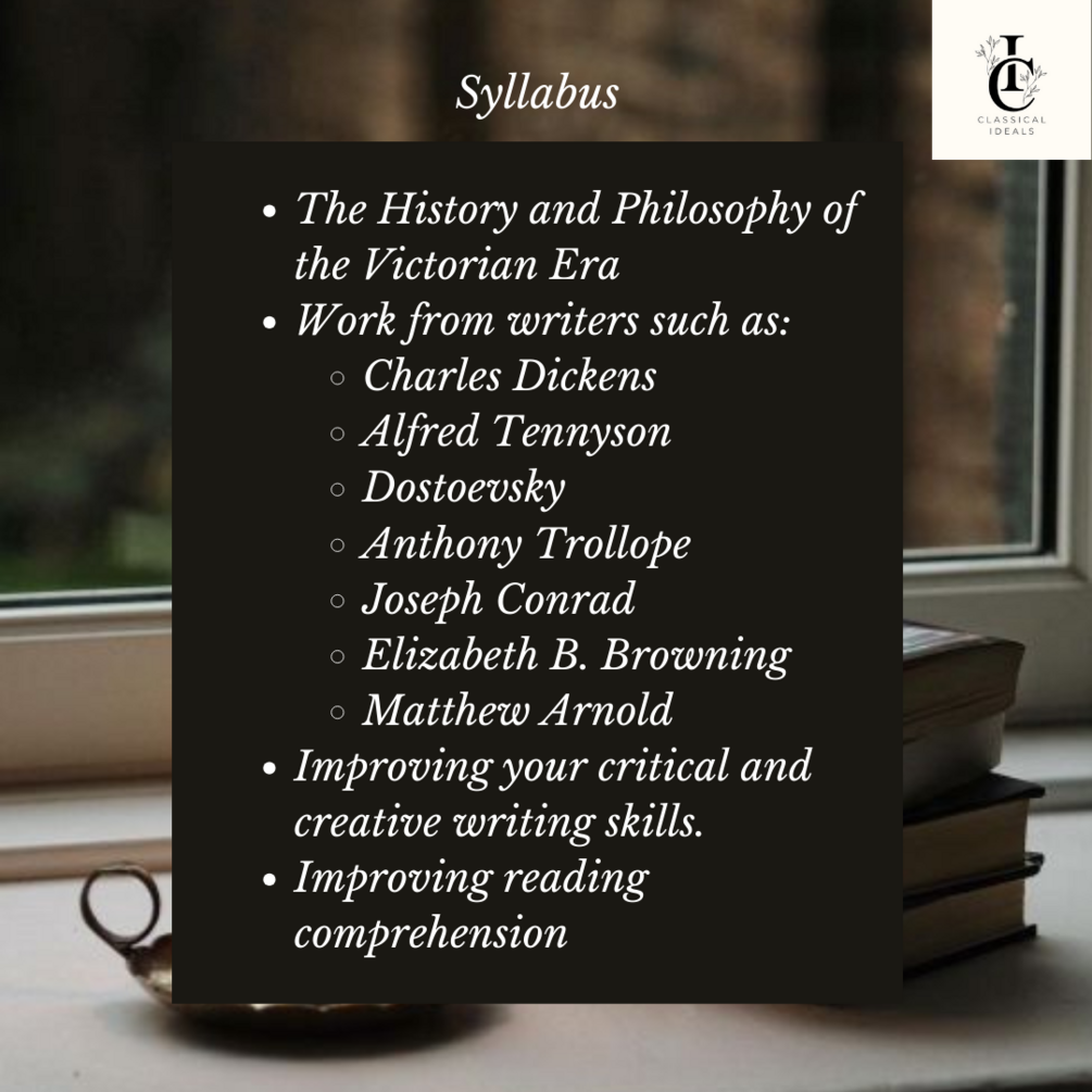 A twelve week, live, online literature course focusing on the Victorian Era. It will run from May 5 - July 21 2024. This is a serious literature course free from the ideological politics that seeks to deface greatness for the promulgation of mediocrity.